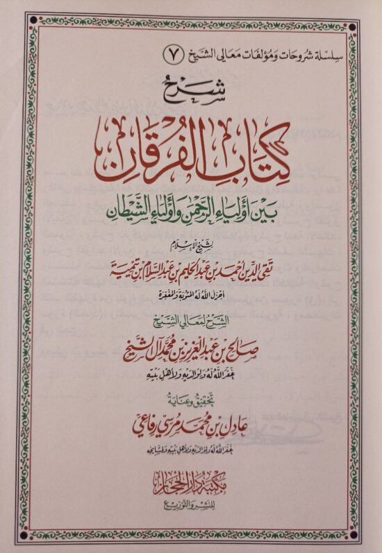 Explication du livre d’ibn Taymiyyah (Furqan bayna Awliya Rahman wa Awliya ach-Chaytan) par le cheikh Salih Al Cheikh.